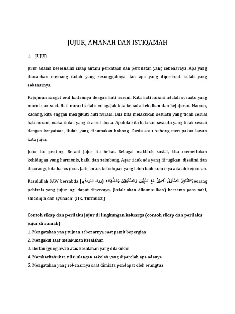 Karena dapat kepercayaan dari teman, ahirnya teman kita banyak, atau dengan lain banyak teman. Pengertian, pentingnya, hikmah, dan manfaat dari perilaku jujur. Demikianlah ulasan singkat mengenai mahfudzot tentang kejujuran yang ditulis dalam teks arab latin dan terjemahnya bahasa indonesia dengan arti penjelasan. Sedangkan kejujuran merupakan kata turunan dari jujur yang memiliki arti dan makna yang kurang lebihnya sama dengan jujur. jujur juga disebut dengan benar atau sesuai dengan kenyataan.