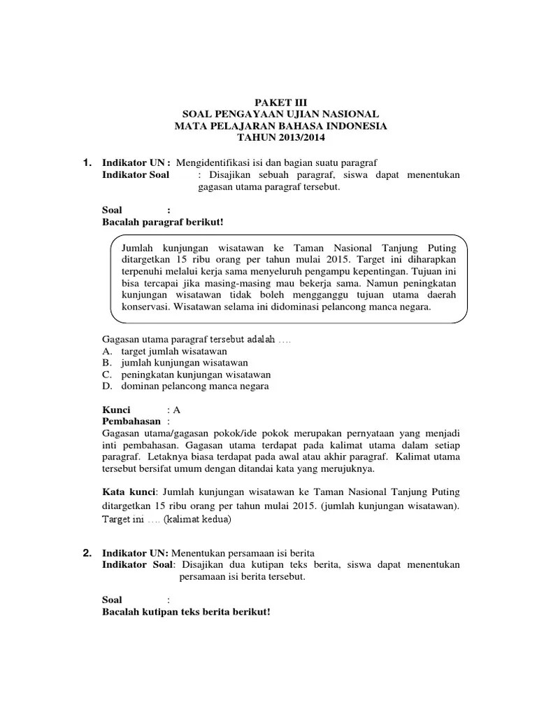 Soal Ujian Bahasa Indonesia Sd Ide Pokok - Ide Pokok Paragraf Interactive Worksheet - Kunci jawaban & soal latihan usbn bahasa indonesia kelas 6, ide pokok.